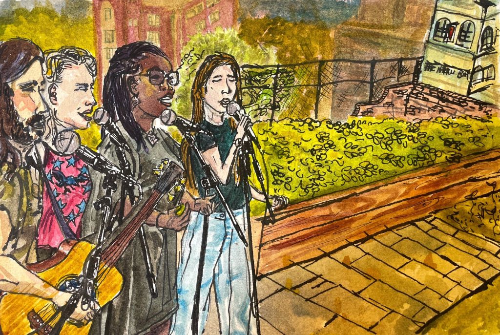 While Quincy Wareham kept the band sounding good, artist Iggy Gill-Ces immortalised them in watercolour.
